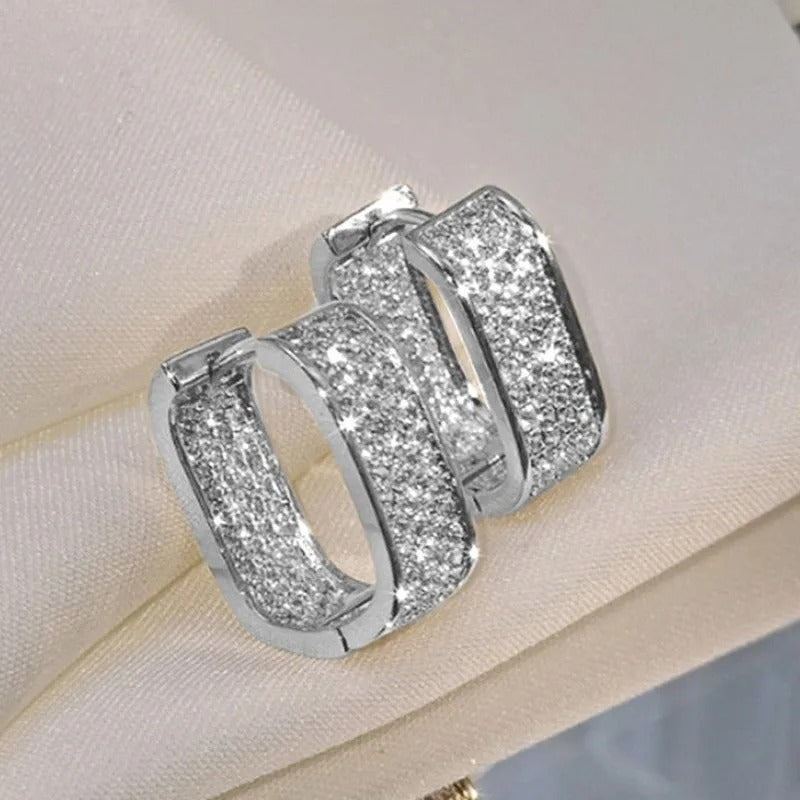 De Feline | Statement Oorbellen combineren een moderne vorm met een luxueuze schittering. De brede band is volledig bezet met fijngeslepen kristallen die het licht vanuit elke hoek prachtig opvangen en doen denken aan kleine diamanten. Het glanzende zilverkleurige frame geeft de oorbellen een elegante en tijdloze uitstraling. De perfecte keuze voor wie houdt van opvallende, chique sieraden die moeiteloos elke look naar een hoger niveau tillen.